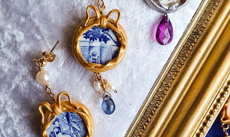 I create designs that celebrate vintage ceramics and old artistry, transforming them into elegant, sustainable jewellery that honors the past and empowers women today.